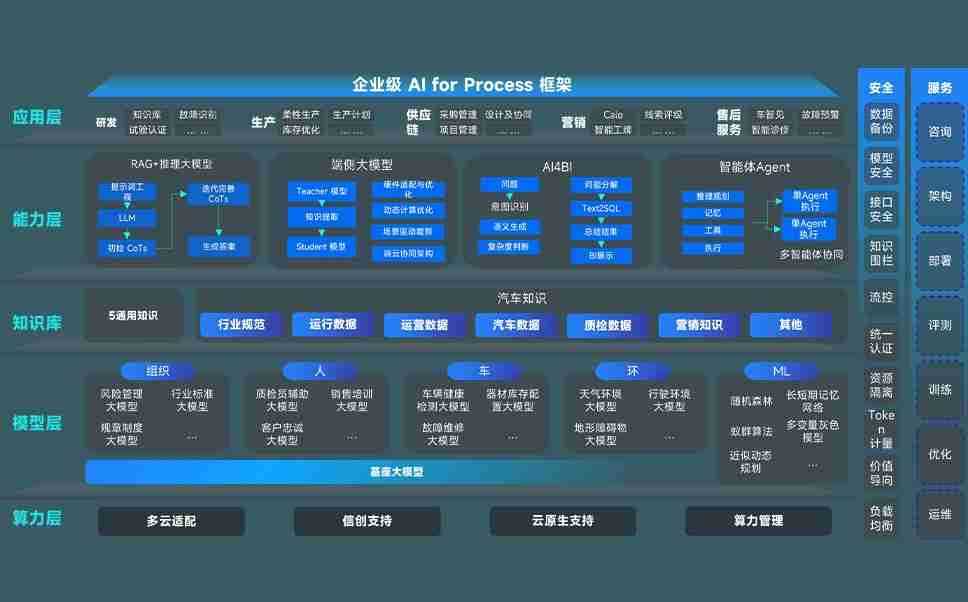 端到端的一站式AI工作空间深度融合了从企业战略规划到日常经营的全流程业务板块,,,,定向解决车企内部领域多、、部门多、、、链条长、、场景碎片化等难题,,,,支持车企快速构建以AI为核心的生产力写作体系,,,实现任务执行与AI能力的无缝集成与交互